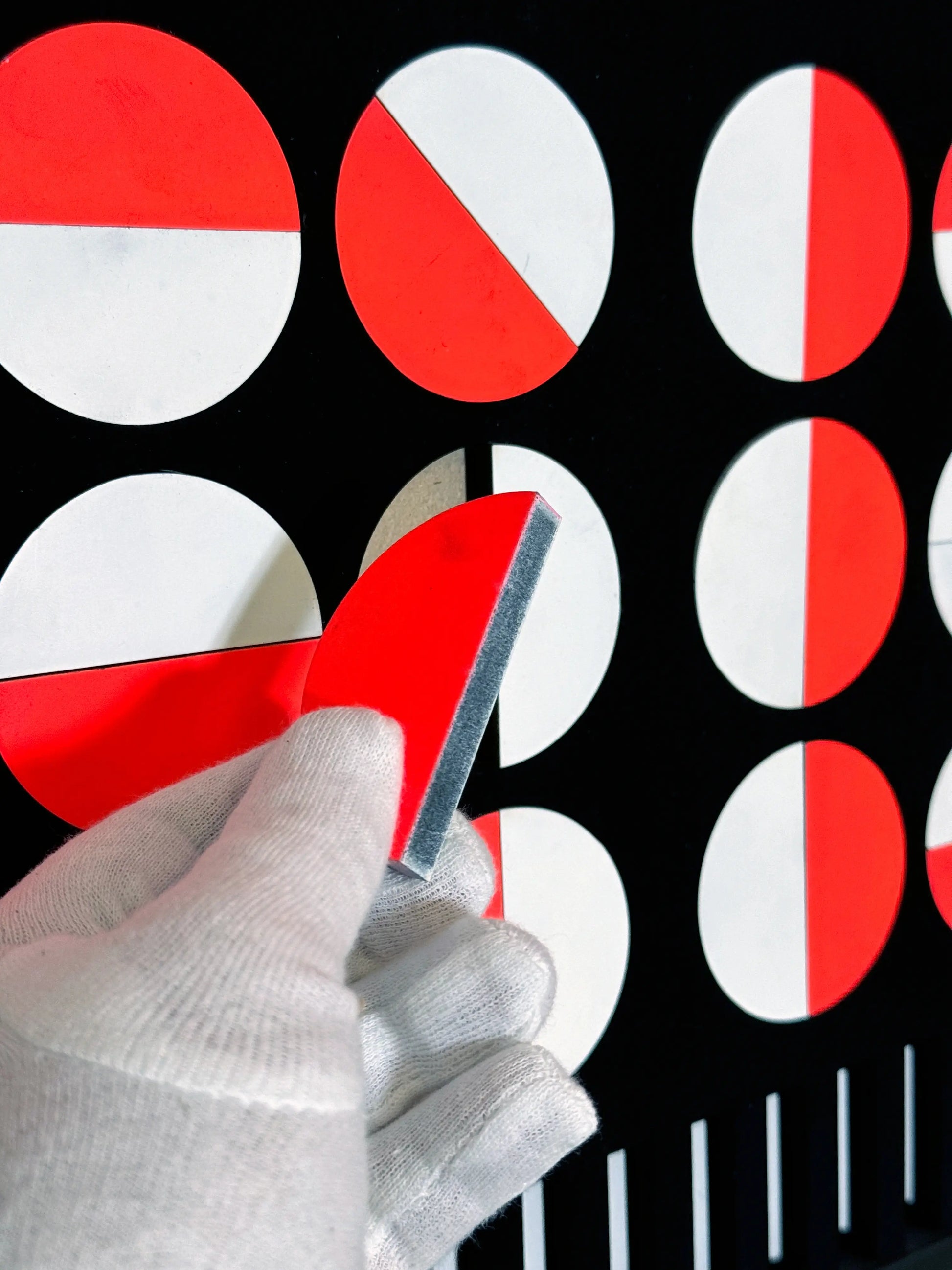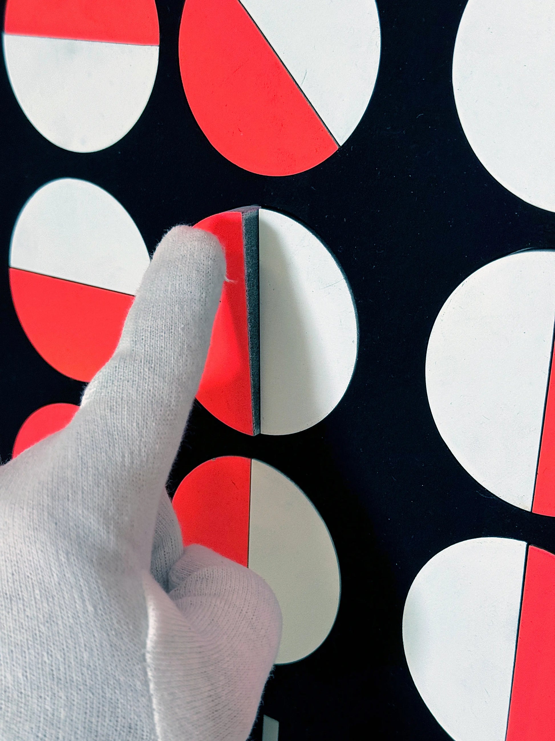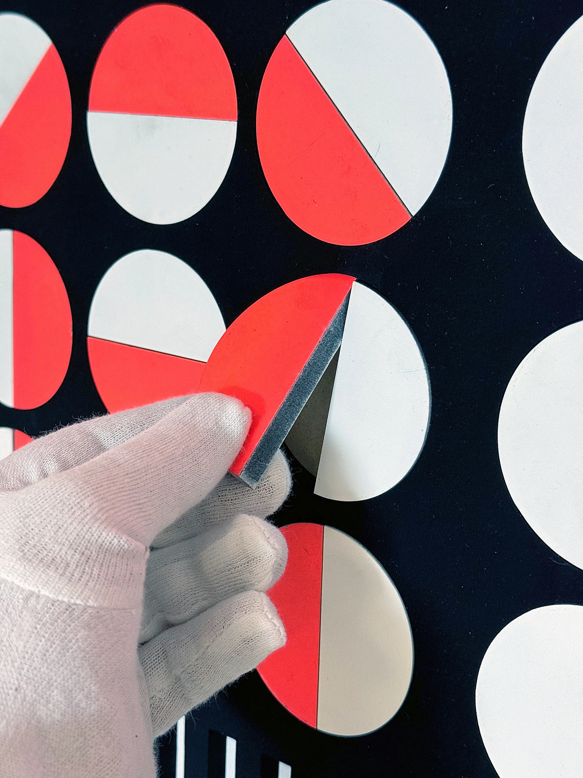 Wit en neon spray paint en Ultra Black acrylverf op mdf