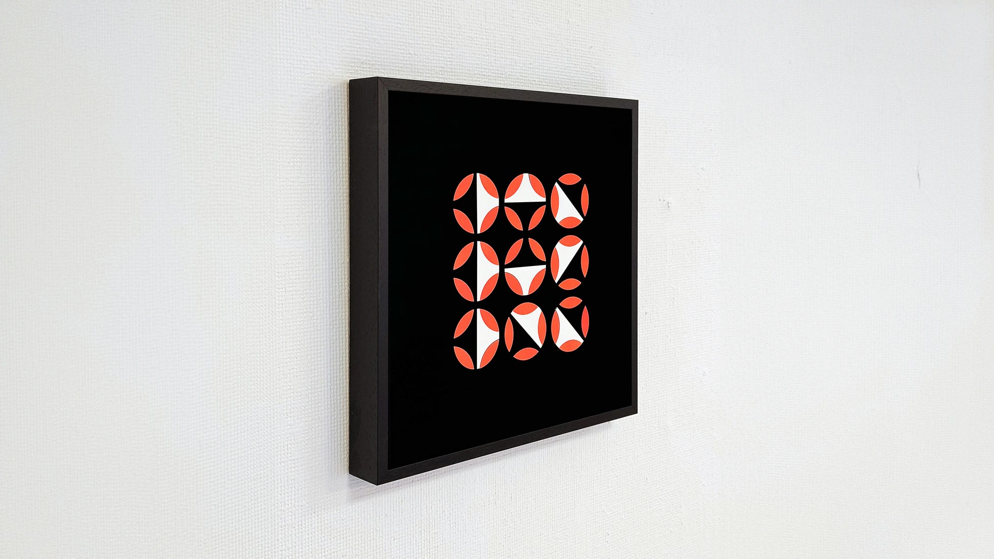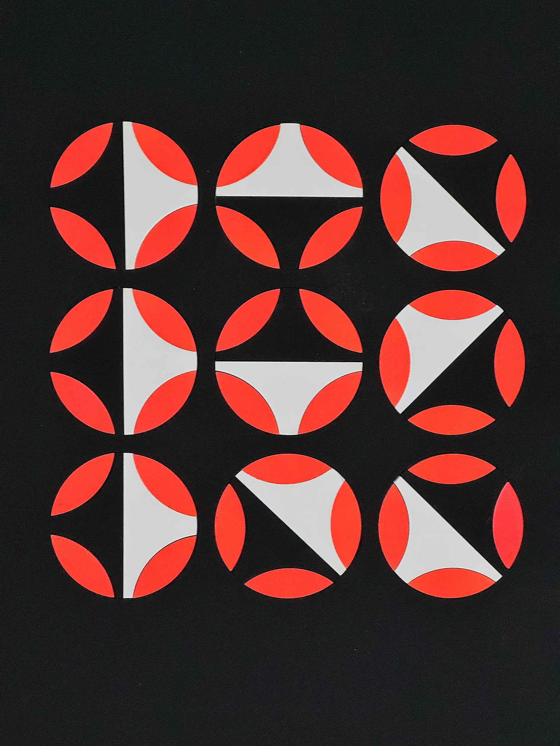 Wit en neon spray paint en Ultra Black acrylverf op mdf